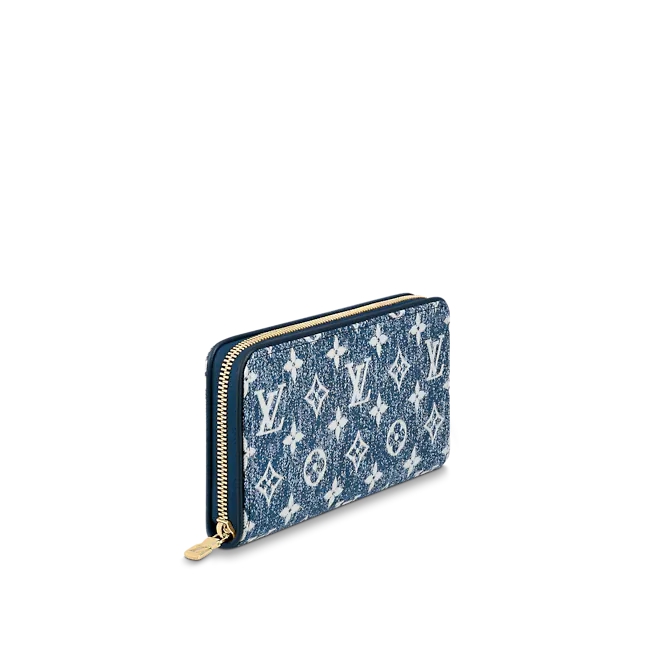 The Zippy Wallet is made of monogrammed jacquard denim – a textile that expresses Louis Vuitton’s signature monogram pattern with a stonewash-like texture. Cowhide leather trimmings complete the iconic design with round zipper closure, as the name suggests. The interior is also attractive with three large compartments, multiple pockets and 12 card slots.